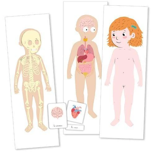 Dans cette pochette, on retrouve des cartes pour apprendre Ă identifier ce qu’il y a dans notre corps.Â