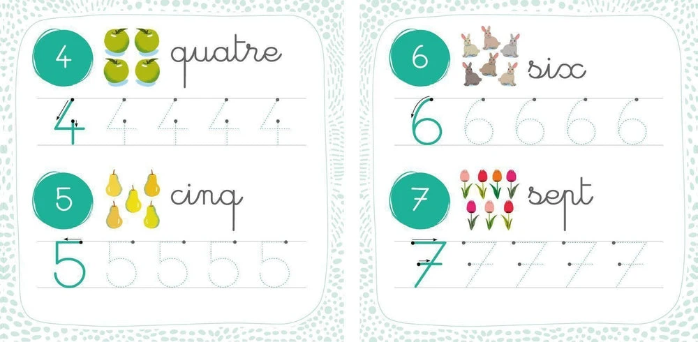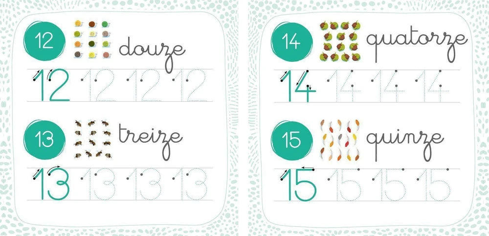 Dans cette pochette, on retrouve les chiffres rugueux à manipuler et à tracer mais aussi des cartes images pour associer chiffre et quantité. Dans un cahier d’activités, des exercices et un mode d’emploi proposés par une enseignante Montessori accompagnent la découverte des chiffres de 0 à 20.