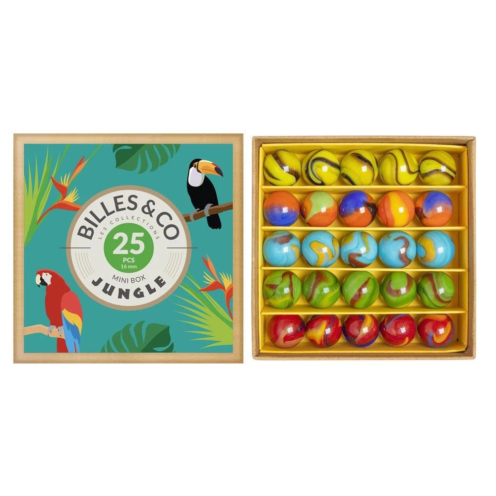 Boîte de 25 pièces Jungle contenant 5 variétés de billes.