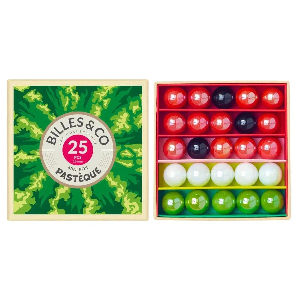 Mini-boite de 25 billes Pastèque contenant 4 variétés de billes :