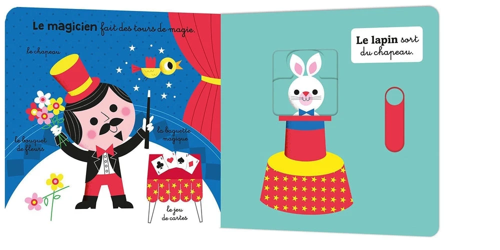 Découvre les incroyables numéros du cirque grâce à des mécanismes simples et faciles à activer ! Sur la dernière page, amuse-toi à deviner ce qui se cache sous les flaps…
