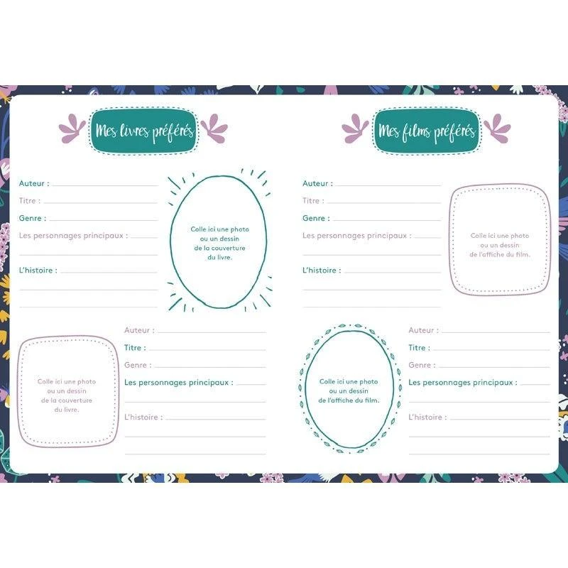 On y trouve des fiches Ă remplir, des pages de journal intime et des pages pour faire ses plus beaux dessins. Tout ceci dans un univers doux et colorĂ©, idĂ©al pour se confier dès 6 ans !Â