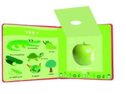 Chaque page de gauche prĂ©sente une couleur grâce Ă de jolies illustrations simples et enfantines mais quel fruit de cette couleur se cache-t-il derrière le rabat ? En frottant son doigt sur le fruit l’enfant y dĂ©couvrira son odeur.