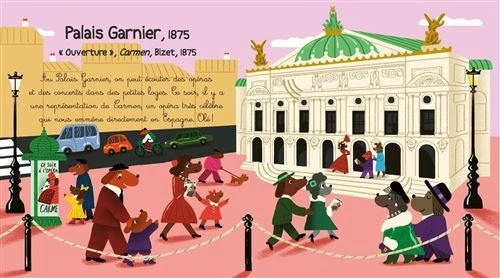 Au Palais Garnier, on écoute » Carmen » de Bizet ; à la Tour Eiffel, on célèbre le 14 juillet au son de la » Marseillaise » de Berlioz ; à Montmartre, on écoute » La Vie parisienne » d’Offenbach ; à Saint-Germain-des-Prés, on swingue au son d’un air de jazz ; à Notre-Dame, on est émus au son du » Te Deum » de Carpentier. Une belle promenade musicale !