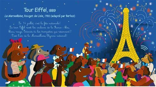 Avec ses puces sonores musicales, ce recueil est unique. Sur chaque page, l’enfant recherche dans l’illustration le petit bouton qui déclenchera la musique. C’est une découverte des monuments de la capitale qui est proposée au fil des pages et des puces sonores de ce livre.
