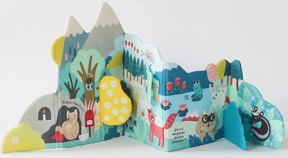 Les petits s’émerveilleront devant ce grand livre coloré et auront plaisir à découvrir les différents animaux cachés derrière des flaps en feutrine à soulever.