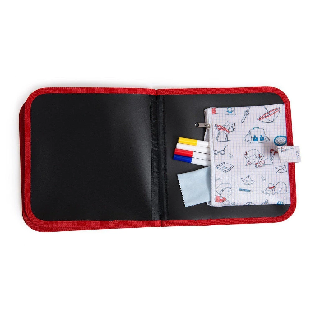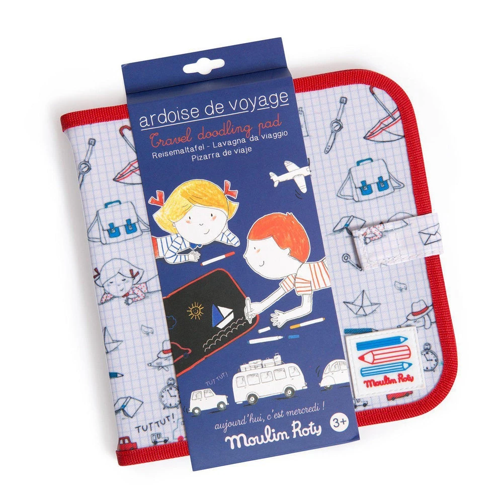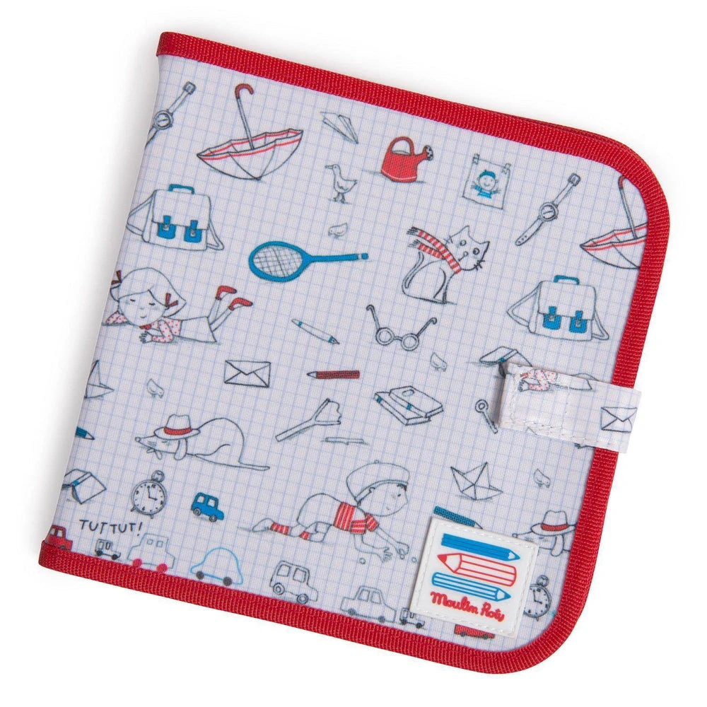 « Papa, Maman, c’est quand qu’on arrive ? » Avec l’ardoise de voyage Aujourd’hui c’est mercredi de Moulin Roty, vos enfants ne verront plus passer le temps lors de vos trajets ! Ce livre ardoise de 10 pages avec 4 crayons effaçables Ă humidifier pour dessiner, effacer et recommencer est idĂ©al pour l’emmener partout avec vous et s’amuser Ă l’infini sur la route des vacances.Â