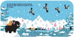 Dans le ciel bleu, la petite marmotte regarde les grands aigles. Quel beau voyage au milieu des nuages ! Mais quand la neige recouvre la montagne, vite, petite marmotte salue ses amis… et hiberne jusqu’à l’année prochaine !