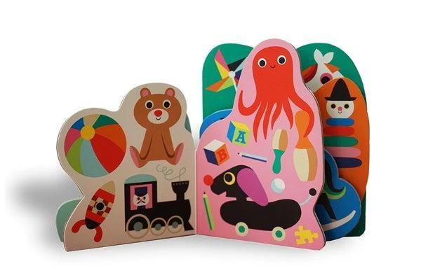 Le ballon, les déguisements, la trottinette, le moulin à vent, les cubes… Tous les jouets les plus cultes des tout-petits se bousculent dans cet imagier pour bébé irrésistible.