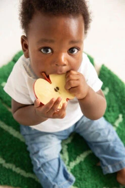 Incroyablement drĂ´le et pratique, Pepita la Pomme, jouet de dentition, est fabriquĂ© avec du caoutchouc 100% naturel issu de l’hĂ©vĂ©a. Elle est douce, facile Ă saisir et sans danger Ă mâcher.