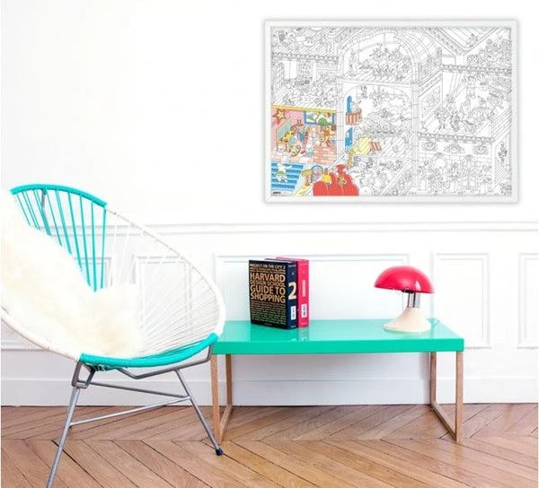 Et pour colorier, c’est vous qui choisissez : dépliez le au sol, accrochez-le au mur ou faîtes-en une jolie nappe !