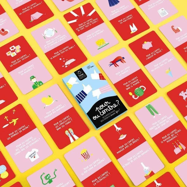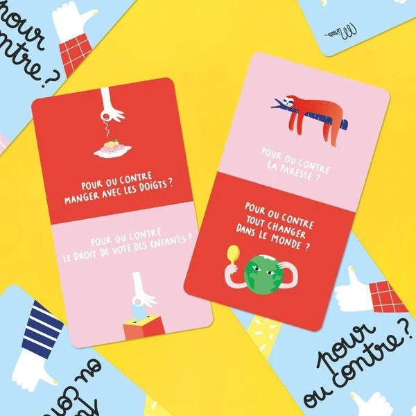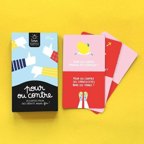 Débats et fous rires garantis en famille ou entre amis avec jeu de cartes Pour ou contre ? de Minus Editions.
