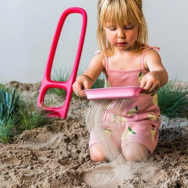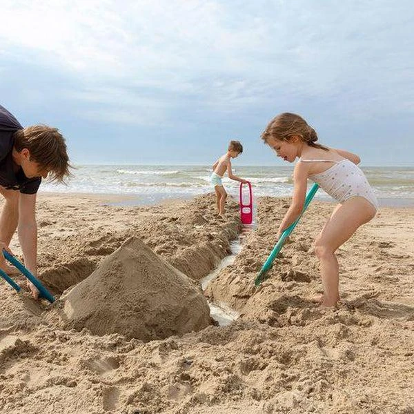 Une pelle 2 en 1, design et innovante qui permet aux enfants de dĂ©placer du sable facilement. Sa poignĂ©e ergonomique est facile Ă saisir !Â
