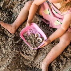 L’astucieux tamis intĂ©grĂ© Ă la pelle et dĂ©tachable, aide les enfants à éliminer les coquilles pour un sable sable lisse et modelable.Â