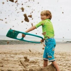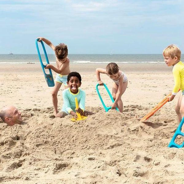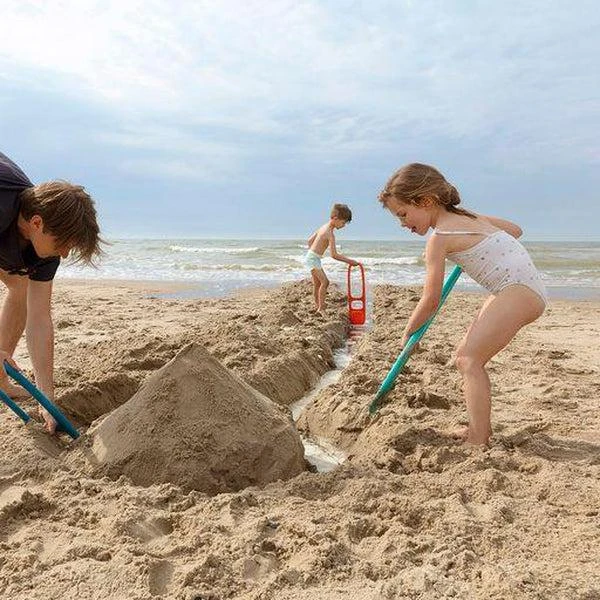 Une pelle 2 en 1, design et innovante qui permet aux enfants de dĂ©placer du sable facilement. Sa poignĂ©e ergonomique est facile Ă saisir !Â