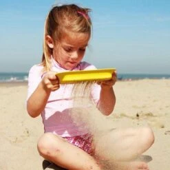 L’astucieux tamis intĂ©grĂ© Ă la pelle et dĂ©tachable, aide les enfants à éliminer les coquilles pour un sable sable lisse et modelable.Â