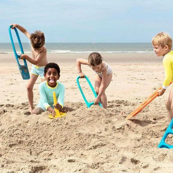 Une pelle 2 en 1, design et innovante qui permet aux enfants de dĂ©placer du sable facilement. Sa poignĂ©e ergonomique est facile Ă saisir !Â