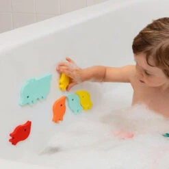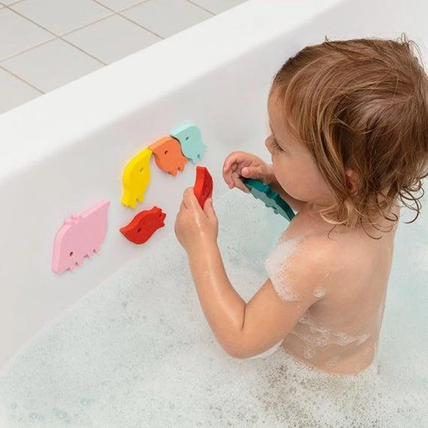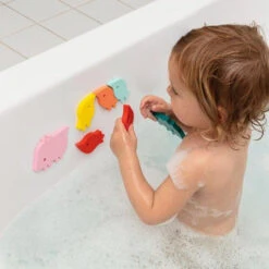 Les petits animaux colorĂ©s flottent dans l’eau, attrapez-les et assemblez les diffĂ©rentes formes sur la paroi de la baignoire ou de la douche.Â