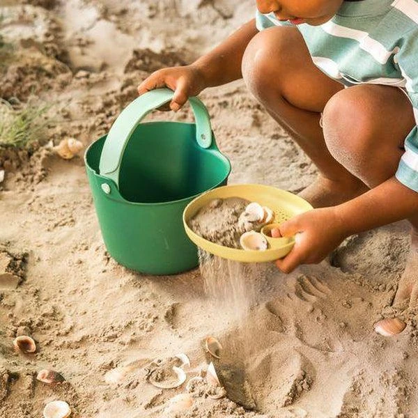 Utilisez ce seau et son tamis pour ramasser, nettoyer et transporter toutes sortes de coquillages et d’autres petits trésors.