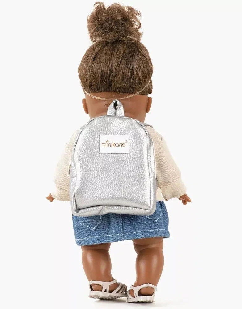 Craquez pour ce joli sac à dos argenté en simili cuir de la marque Minikane.