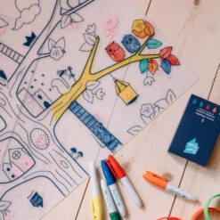 Inclus 5 feutres effaçables sur silicone : vert-orange-jaune-bleu-rouge