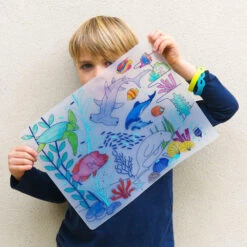 Ce set très facilement pliable occupera votre petit artiste dans tous ses déplacement et peut être également détourné pour des ateliers créatifs : peinture à l’eau, pâte à modeler, cuisine…C’est une super idée de cadeau !