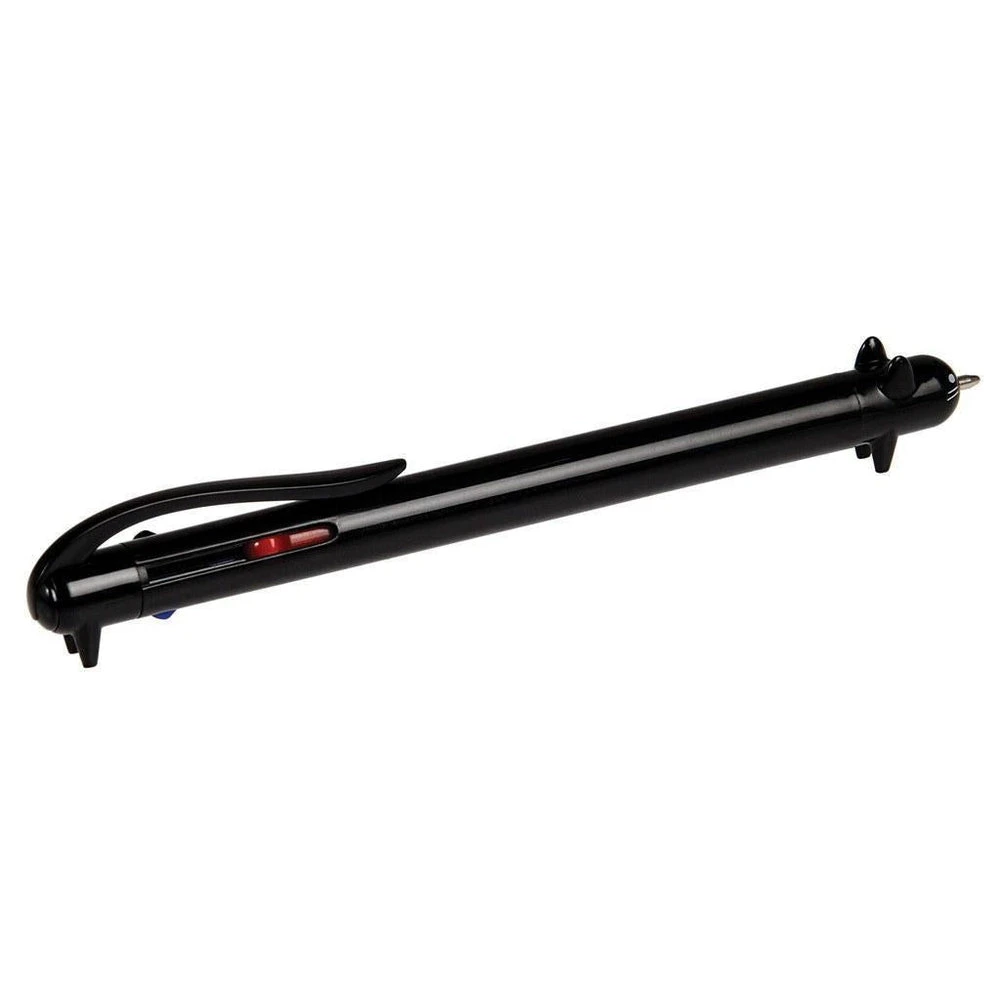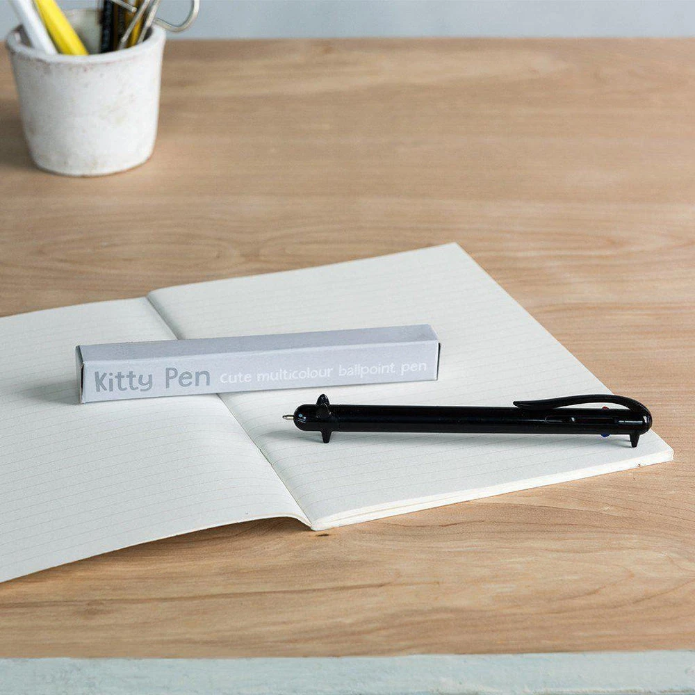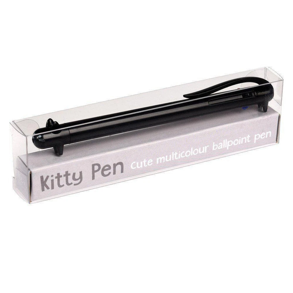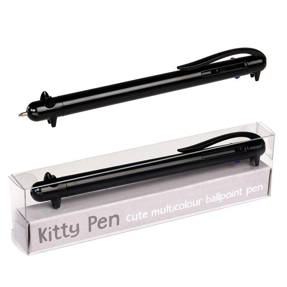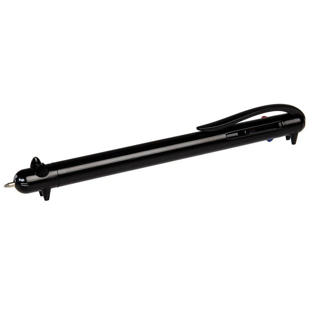 Un stylo à billes rétractable à 3 couleurs: Bleu, Noir, Rouge. En forme de petit chat noir.