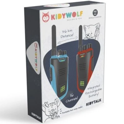 Les talkies walkies Kidytalk bleu et rouge de la marque Kidywolf permettent aux petits et aux grands de communiquer jusqu’à 6 km de distance ! Attache le Ă ta ceinture et utilise la lampe de poche pour partir Ă l’aventure !Â