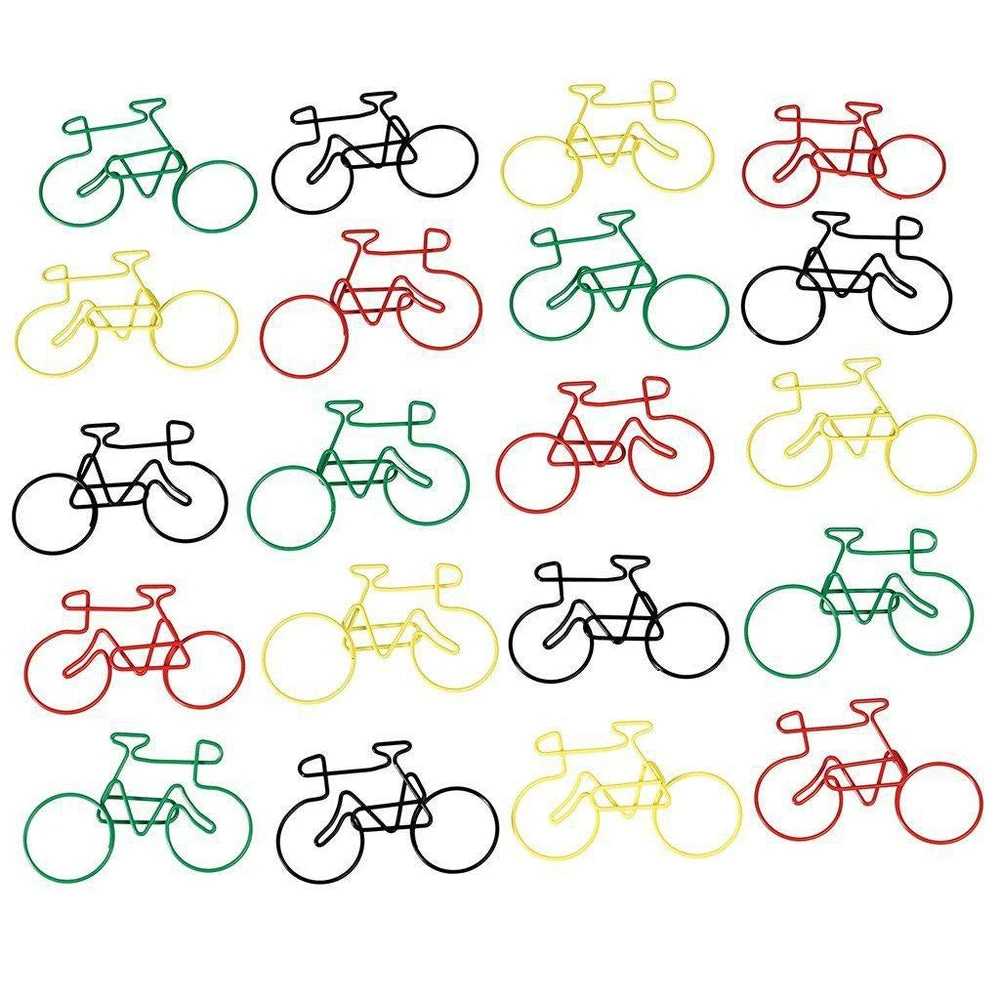 Voilà  20 super trombones à papier en forme de vélo! Pour les petit(e)s fans des 2 roues! 4 couleurs différentes: vert, jaune, rouge et noir