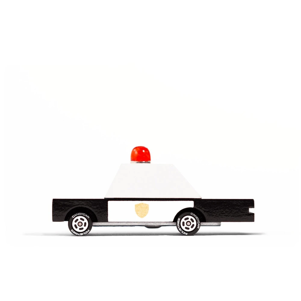 DĂ©couvrez la petite voiture de Police en bois de la marque Candylab.Â